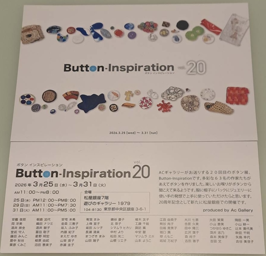 ACギャラリーのボタン展、20回目は松屋銀座「遊びのギャラリー」で開催されます。