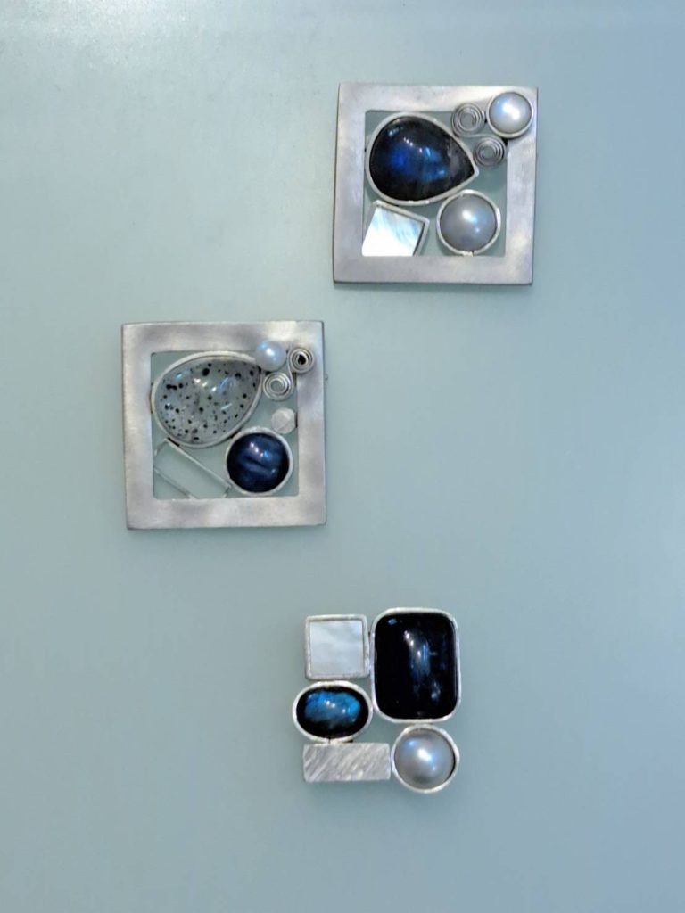 真ん中のブローチの石はヘマタイトインクォーツ。ちょっと珍しい石です。